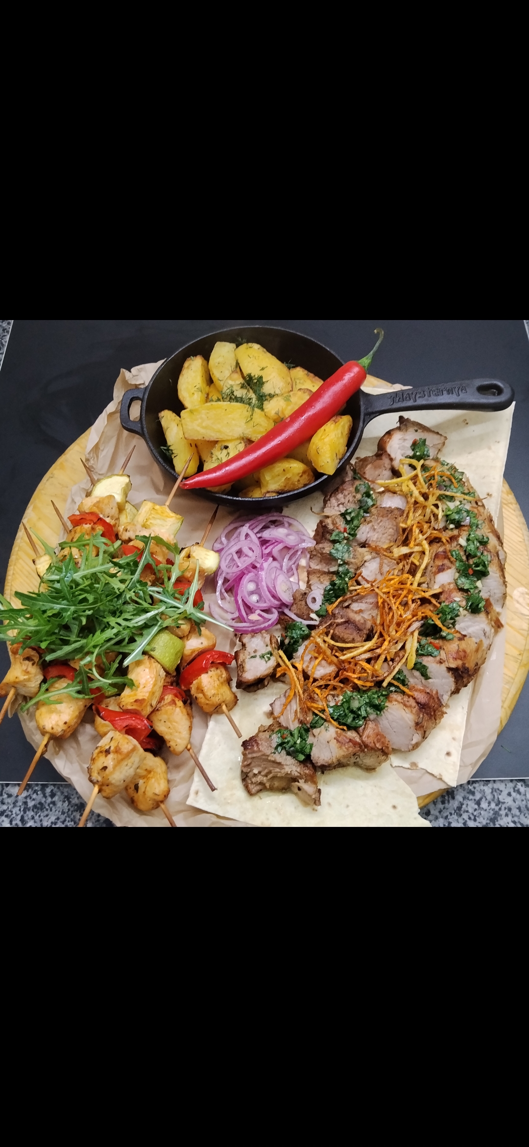 КОМПЛЕКС ШАШЛИЧОК КУРЯЧИЙ З ОВОЧАМИ НА ШПАЖЦІ 150Г.